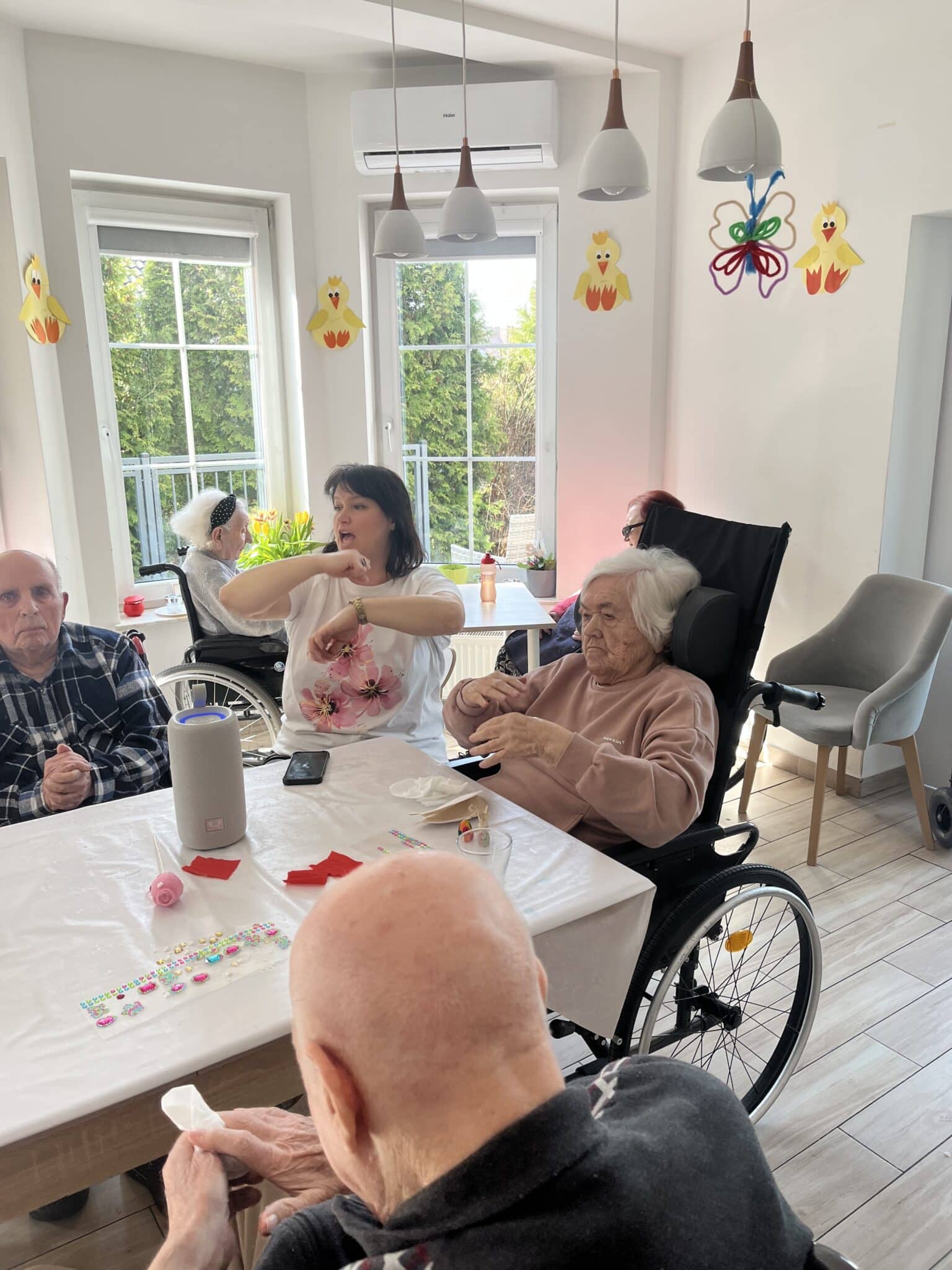 Zrealizowaliśmy bogaty program zajęć, który pozwolił naszym uczestnikom zadbać zarówno o ciało, jak i umysł. Odbyły się zajęcia ruchowe poprawiające kondycję i samopoczucie, a także relaksacyjna muzykoterapia, która wprowadzała nas w spokojny, harmonijny nastrój