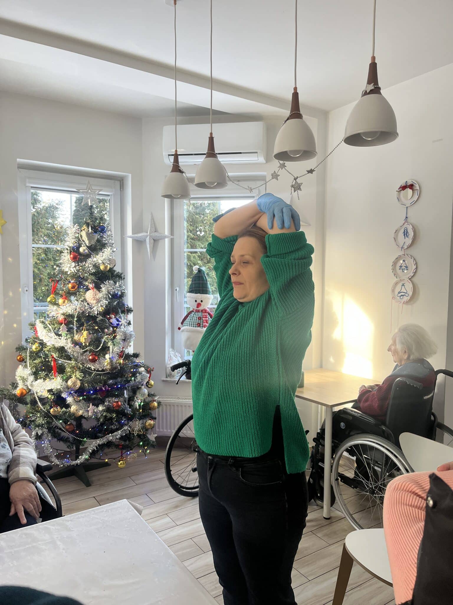 W ramach wsparcia w zakresie kultury fizycznej seniorzy uczestniczyli w grupowych zajęciach ruchowych obejmujących ćwiczenia wzmacniające siłę mięśni, poprawiające koordynację ruchową oraz ogólną sprawność organizmu. Program zajęć został dostosowany do możliwości zdrowotnych uczestników i obejmował m.in. ćwiczenia oddechowe oraz wzmacniające mięśnie nóg, rąk i tułowia.