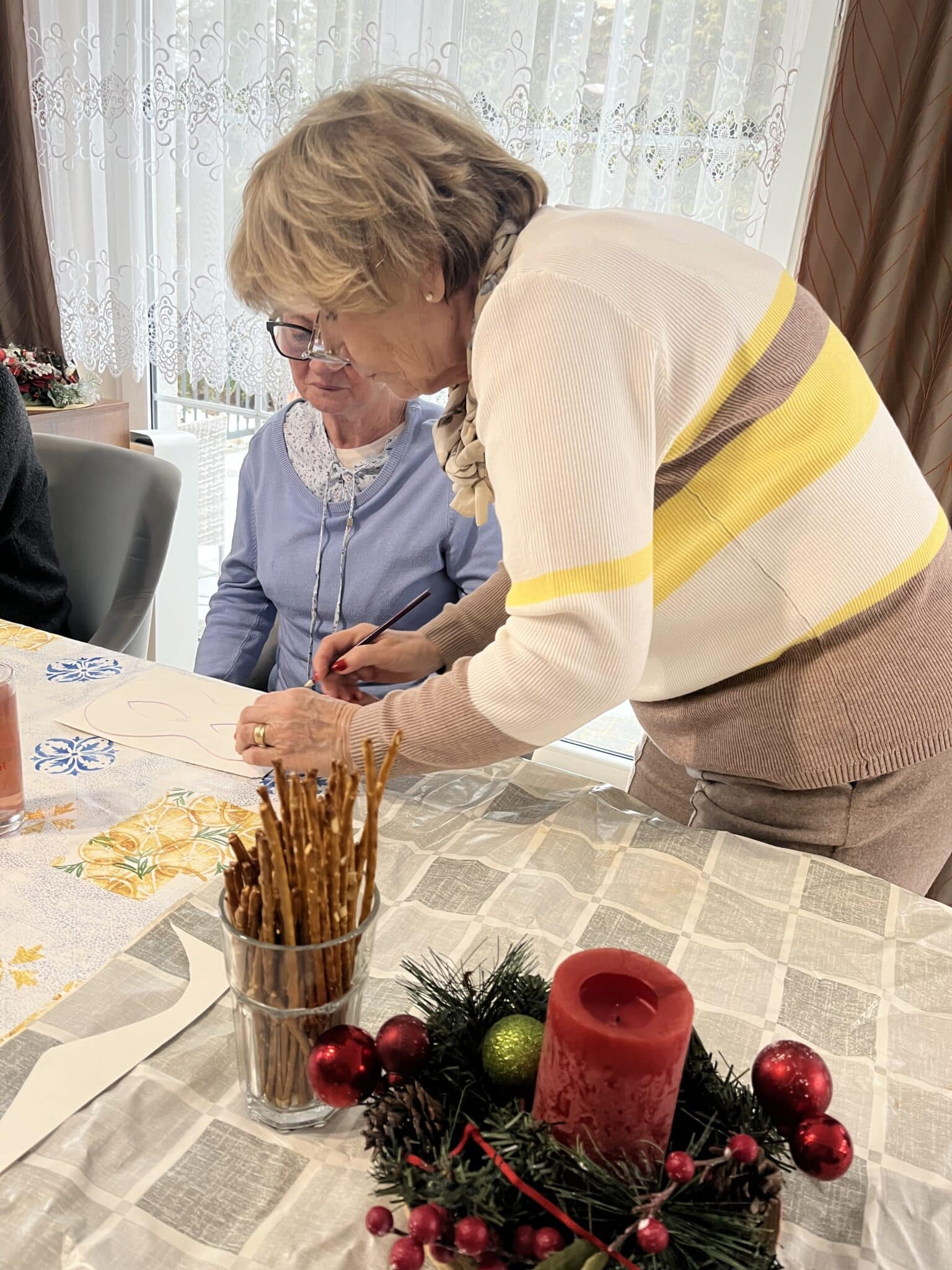 Ważnym elementem spotkań było także wsparcie w zakresie zdrowia. Seniorzy uczestniczyli w grupowych konsultacjach z pielęgniarką dotyczących zdrowego stylu życia oraz profilaktyki i radzenia sobie z chorobami przewlekłymi.