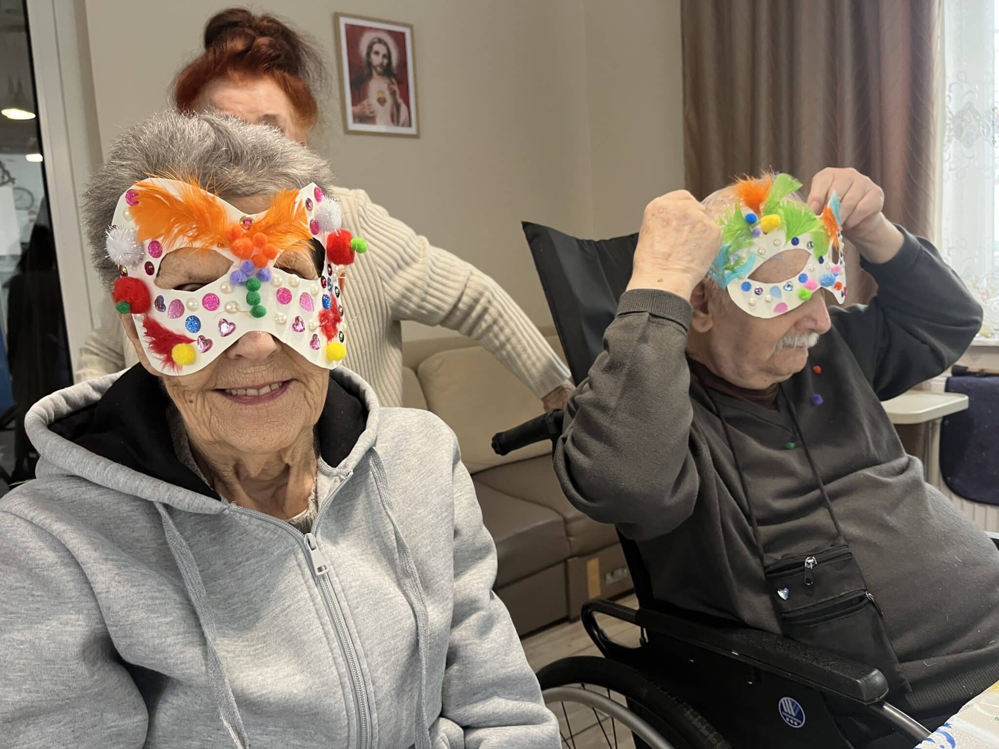 Dużym zainteresowaniem cieszyły się również zajęcia rozwijające kreatywność i zainteresowania. Podczas warsztatów seniorzy wykonywali maski karnawałowe, tworzyli zimowe pejzaże, brali udział w warsztatach mydlarskich, przygotowywali szkatułki z gipsu oraz uczestniczyli w warsztatach plastycznych, podczas których powstawały ozdobne serduszka.